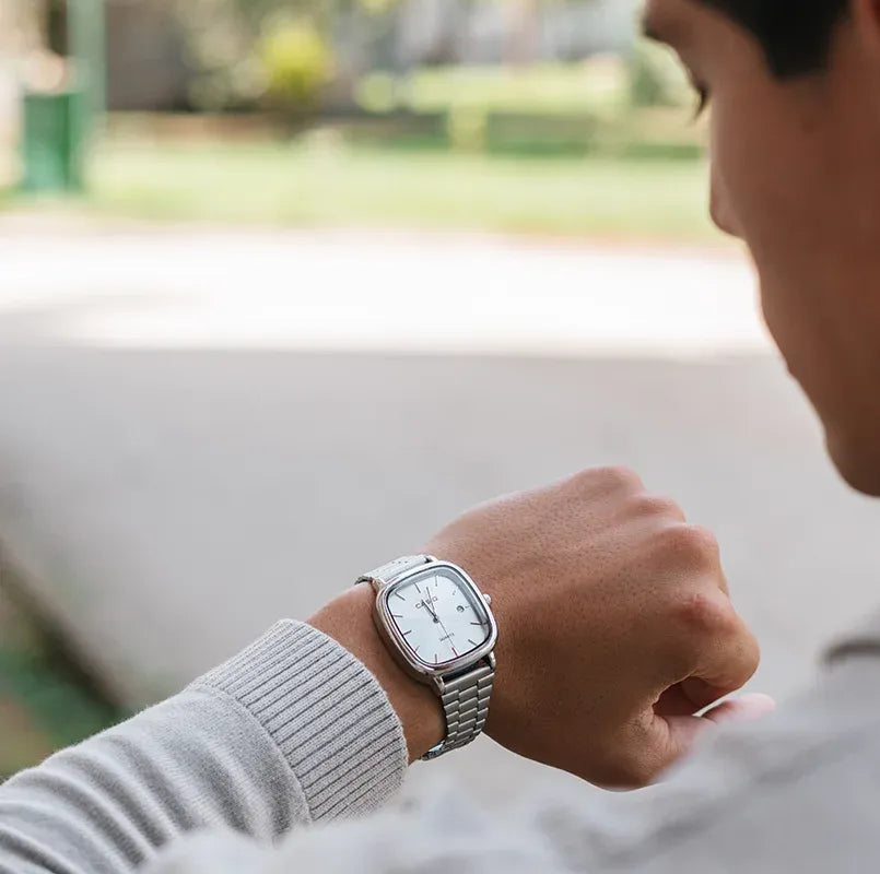 Material? Built with premium stainless steel, the watch does not darken over time and, in the case of black models, it does not peel, maintaining its flawless appearance.